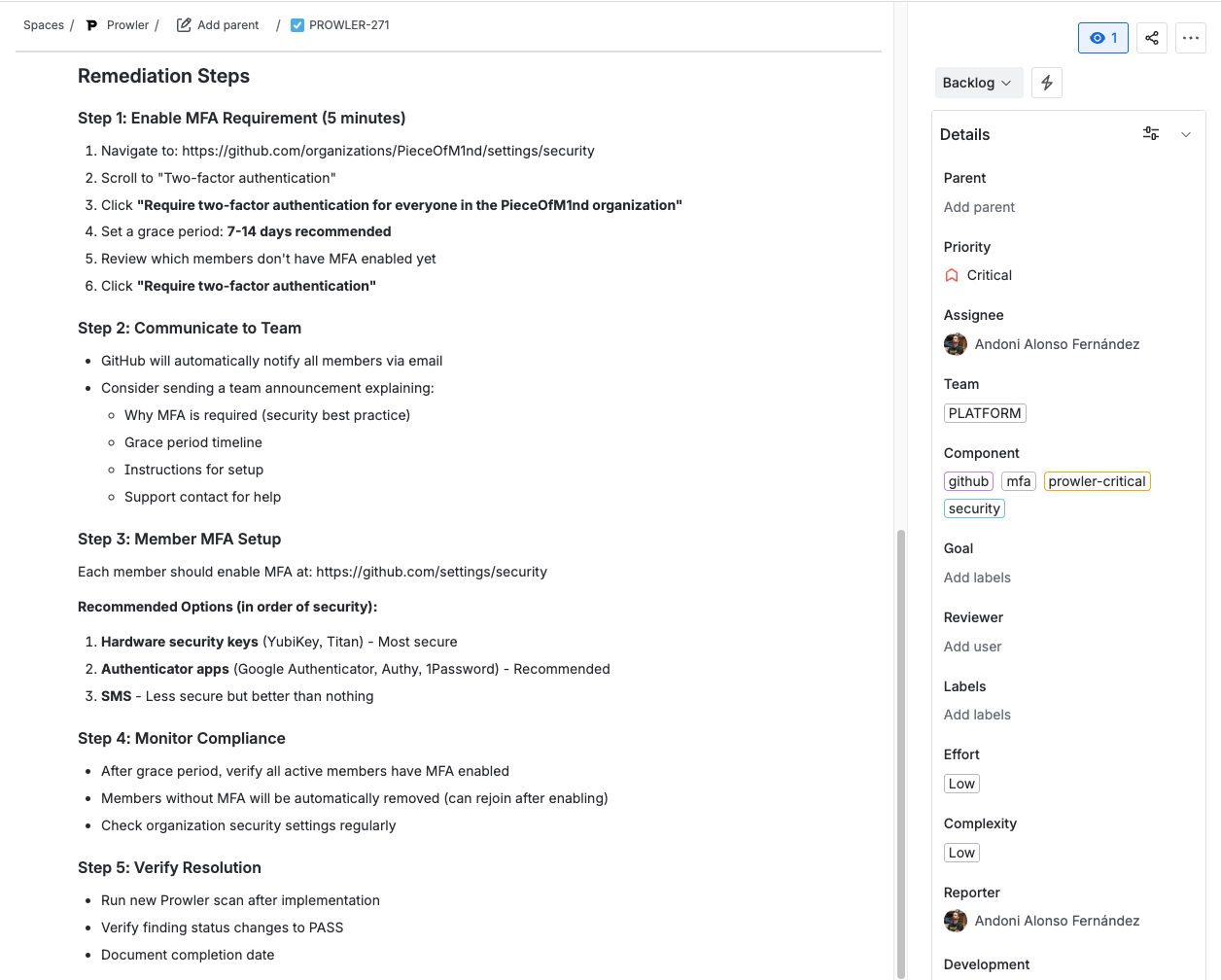 As you can see in the demo, you can use the Prowler MCP to interact with your findings and combine it with other MCPs to cover the whole workflow, let’s see some examples.