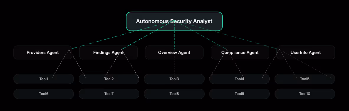Our AI-powered virtual assistant orchestrates multiple specialized agents to provide comprehensive cloud security analysis and automated remediation workflows.